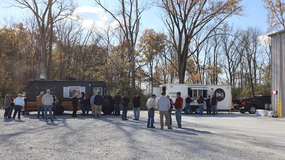 Attendees of the open house grab food at the food trucks.